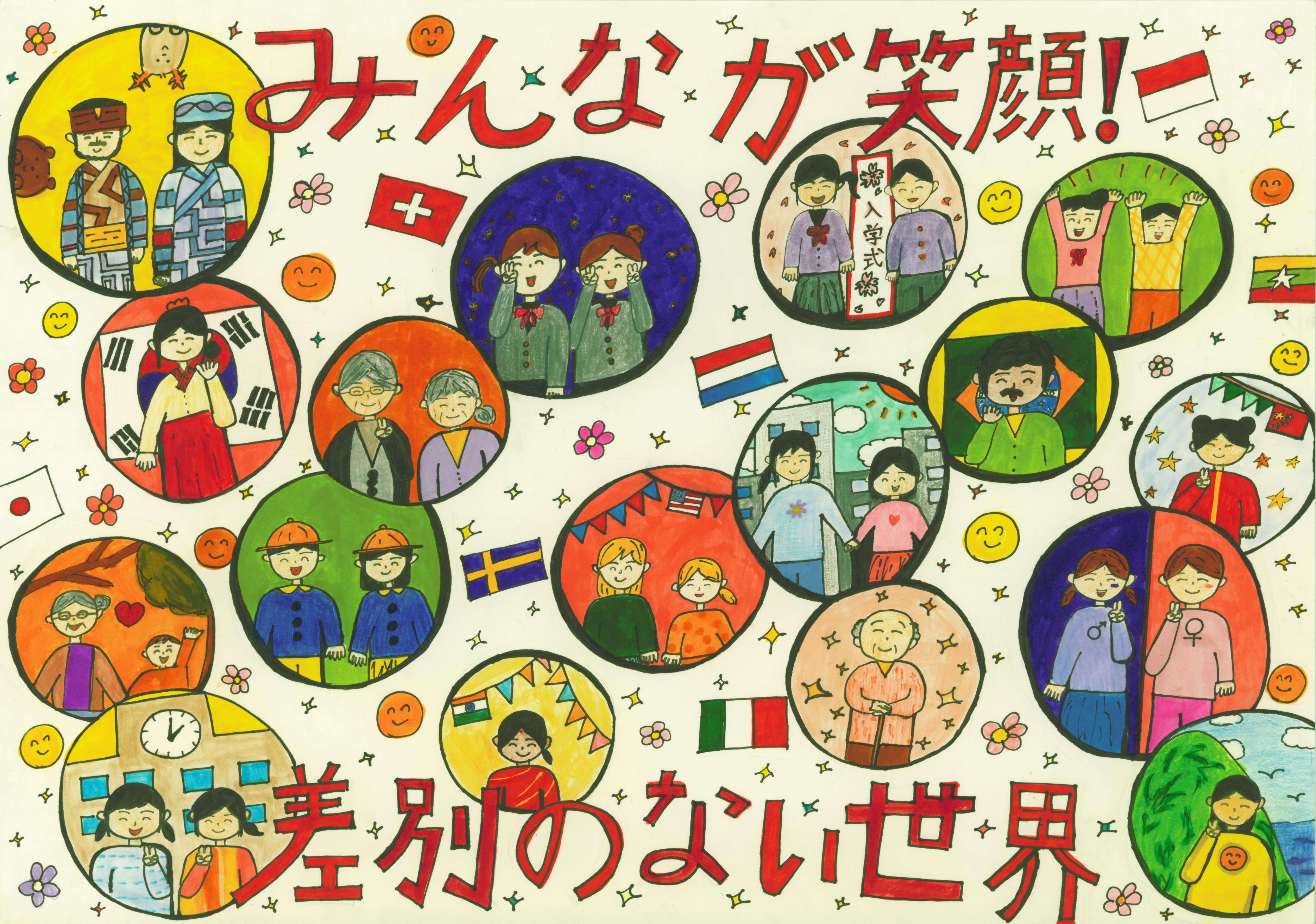 | 最優秀賞 | 函館市立中央小学校 | 中里 心々優 | みんなが笑顔!差別のない世界 |