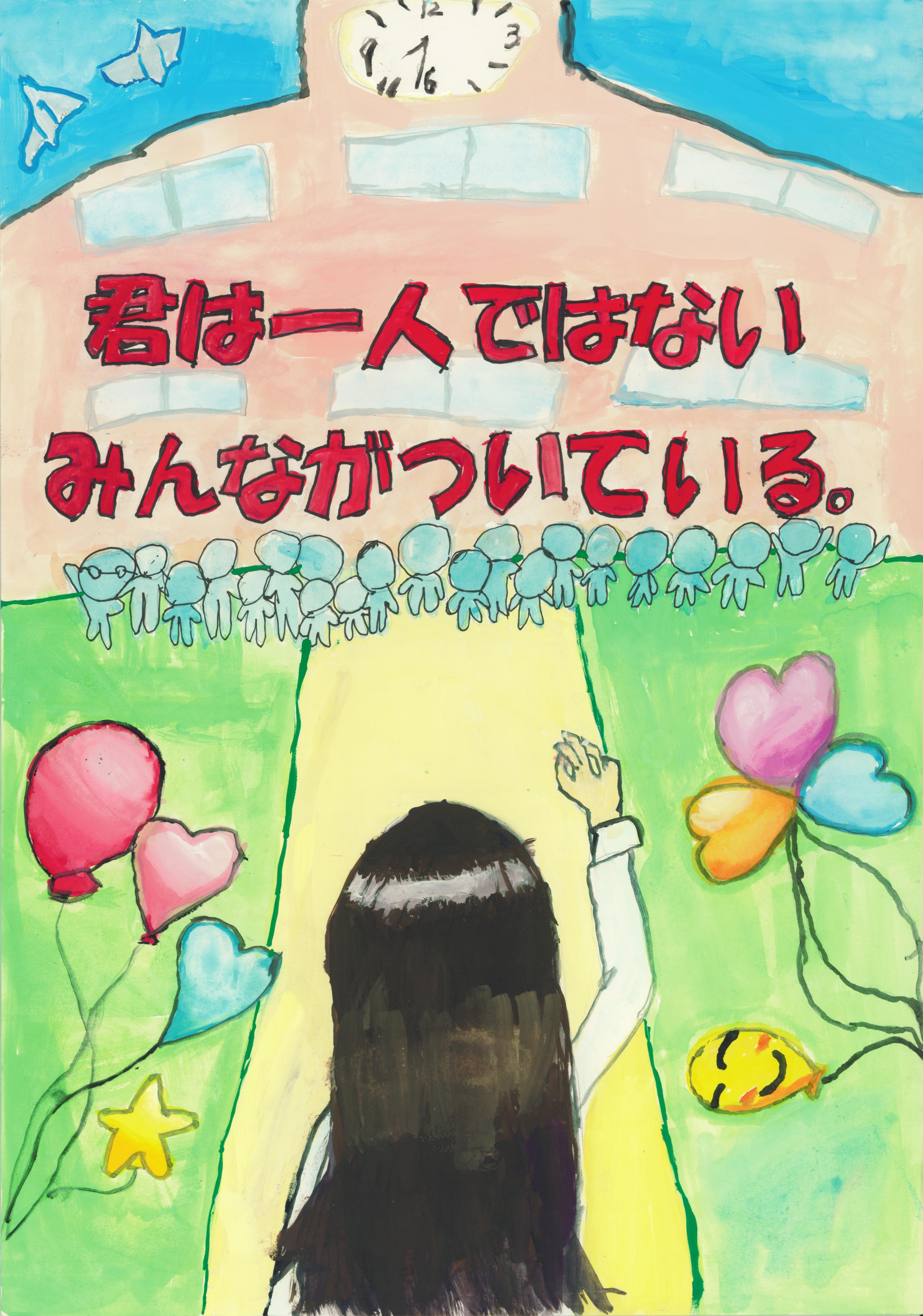 | 最優秀賞 | 江差町立江差北中学校 | 中野 麗 | 君は一人ではない みんながついている。 |