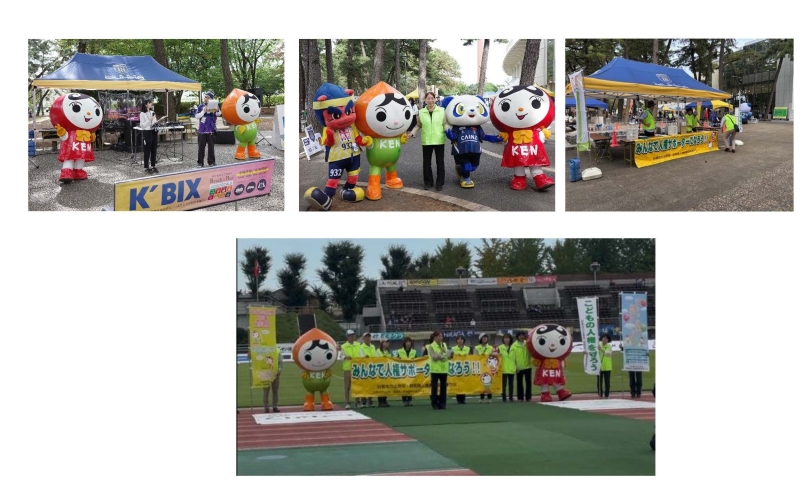 試合開始前に、グランド内で群馬県人権擁護委員連合会長が人権メッセージを伝え、ザスパ群馬協力のもと作成した人権啓発メッセージ動画が放映されま した。動画でザスパ群馬の選手とアカデミー所属の選手たちが「人権侵害は誰かのことじゃない。」と力強いメッセージを宣言してくれました。また、人権イメージキャラクター人KENまもる君、人KENあゆみちゃんが アグレッシブチャレンジに挑戦しました。