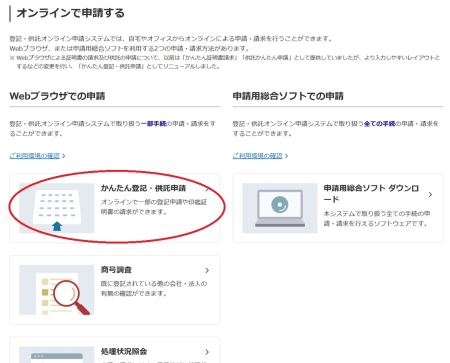>>登記・供託オンライン申請システム「かんたん登記・供託申請」を選択してください