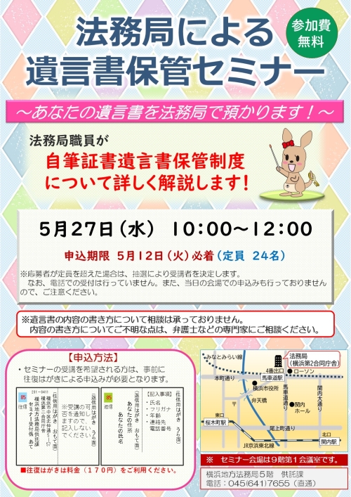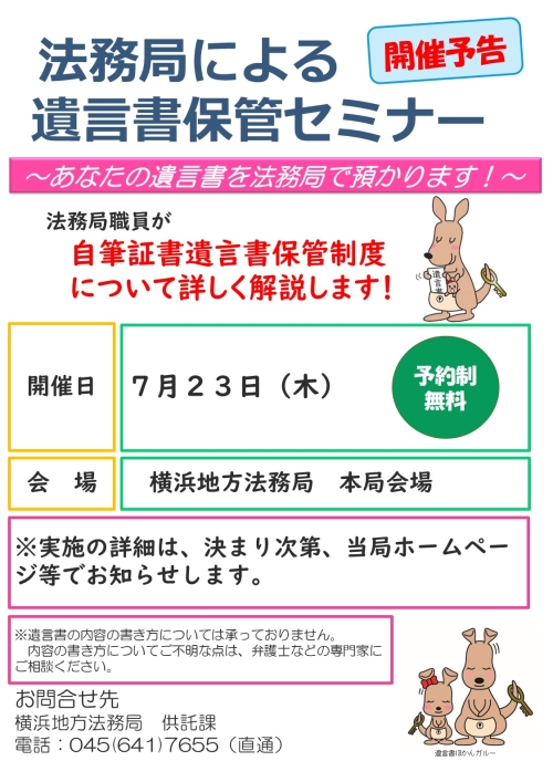 「法務局による遺言書保管セミナー」開催のお知らせ